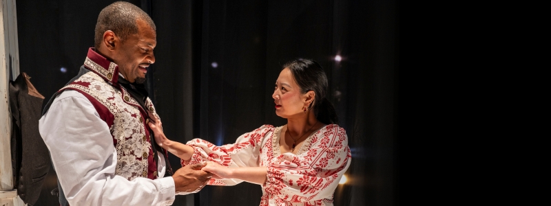 For a play that seeks to center psychology, Miss Julie is oddly haunted by the sweaty spectacles more readily associated with embodiment. Dance troubles theatre’s psychological naturalism by threatening to drown out a scientistic study of human behavior. Strindberg knew this, and his f irst gesture was to banish the Midsummer revels offstage, as if to keep bodily spectacle at bay so that a psychological power struggle can unfold. Director Gabrielle Randle-Bent, however, plays with the porous nature of the boundary between the dance outside and drama within as if to heighten the formal trouble dance presents. After Court audiences get a privileged glimpse of Strindberg’s banished Midsummer revelry, Julie relentlessly attempts to convince Jean to come back out and dance with her. Jean replies: “I wonder if it’s wise for you to dance twice running with the same partner, especially since these people are quick to jump to conclusions….” Their debate parses the disastrous implications of being seen dancing together and crossing the strictures set by class and gender.
