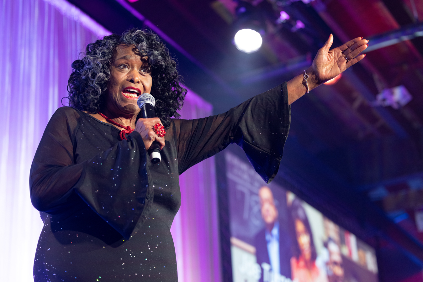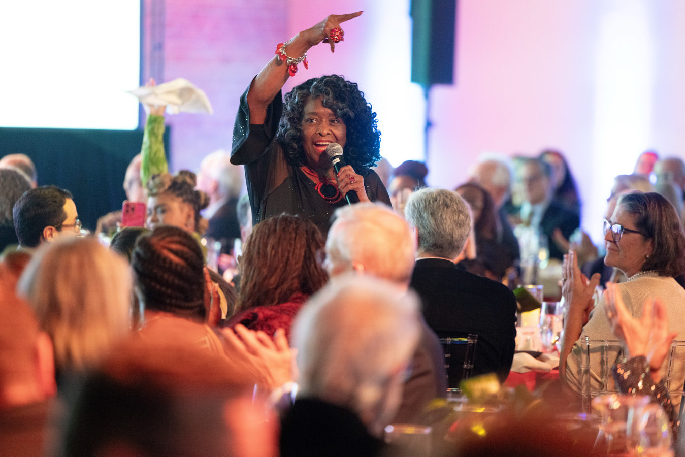 Photo of 2025 Gala Co-Chair Amina Dickerson and guests by John Zich and Anne Ryan.