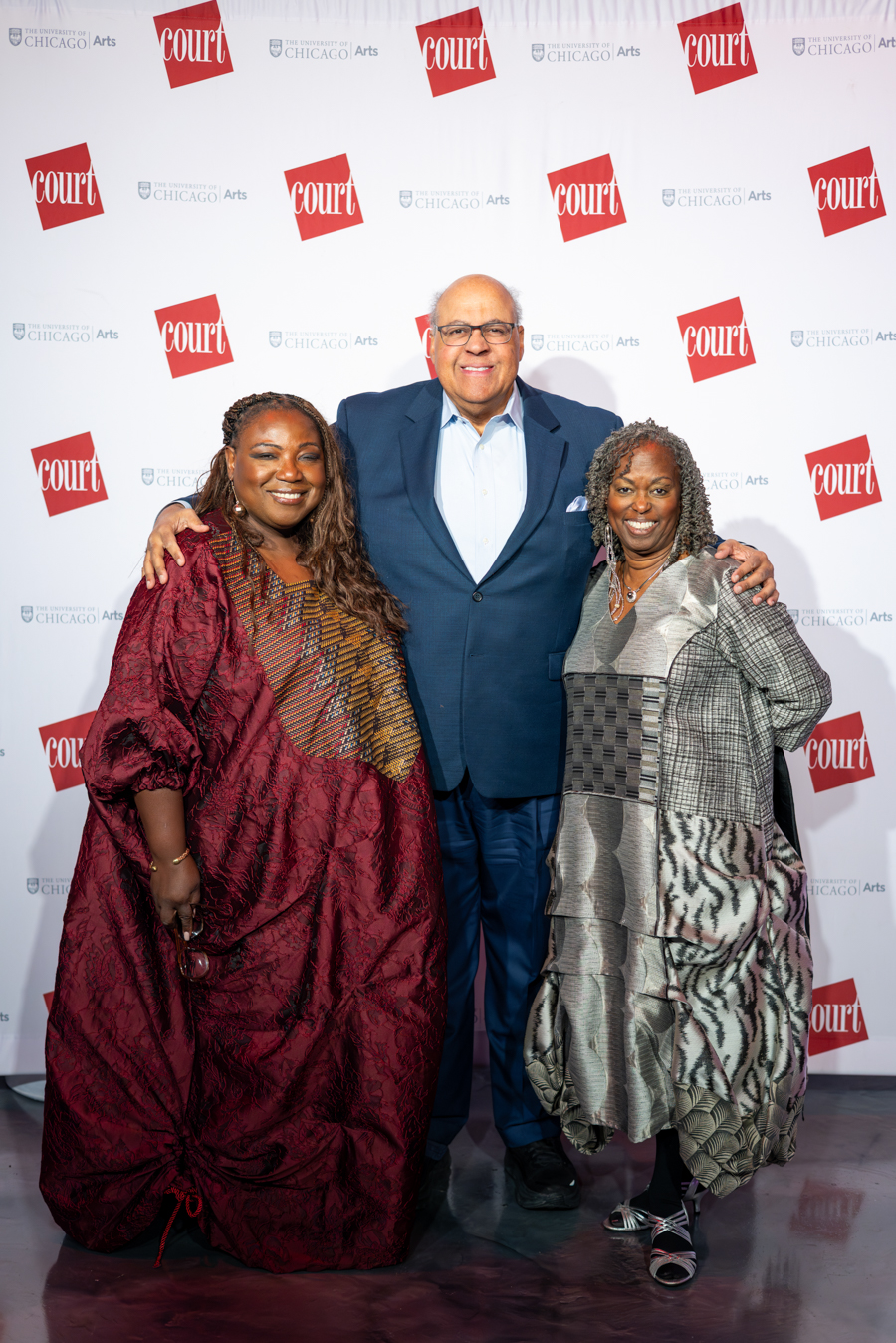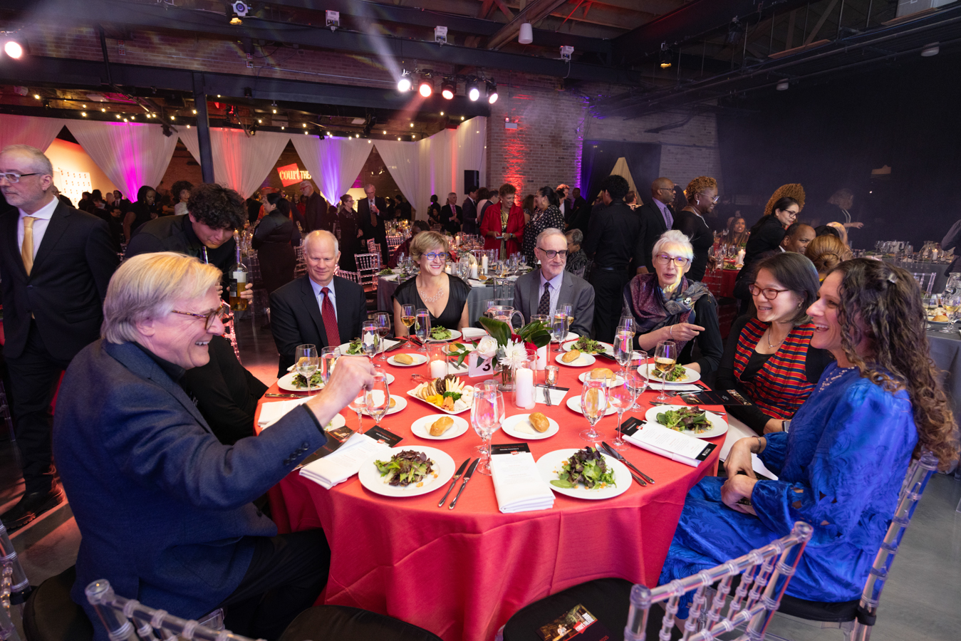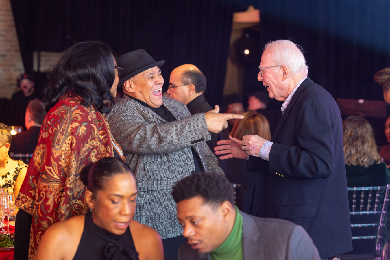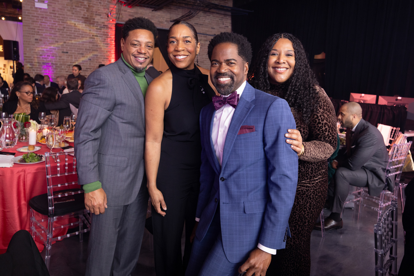 Photo of 2025 Gala Co-Chair Amina Dickerson, Ron OJ Parson, and guests by John Zich and Anne Ryan.
