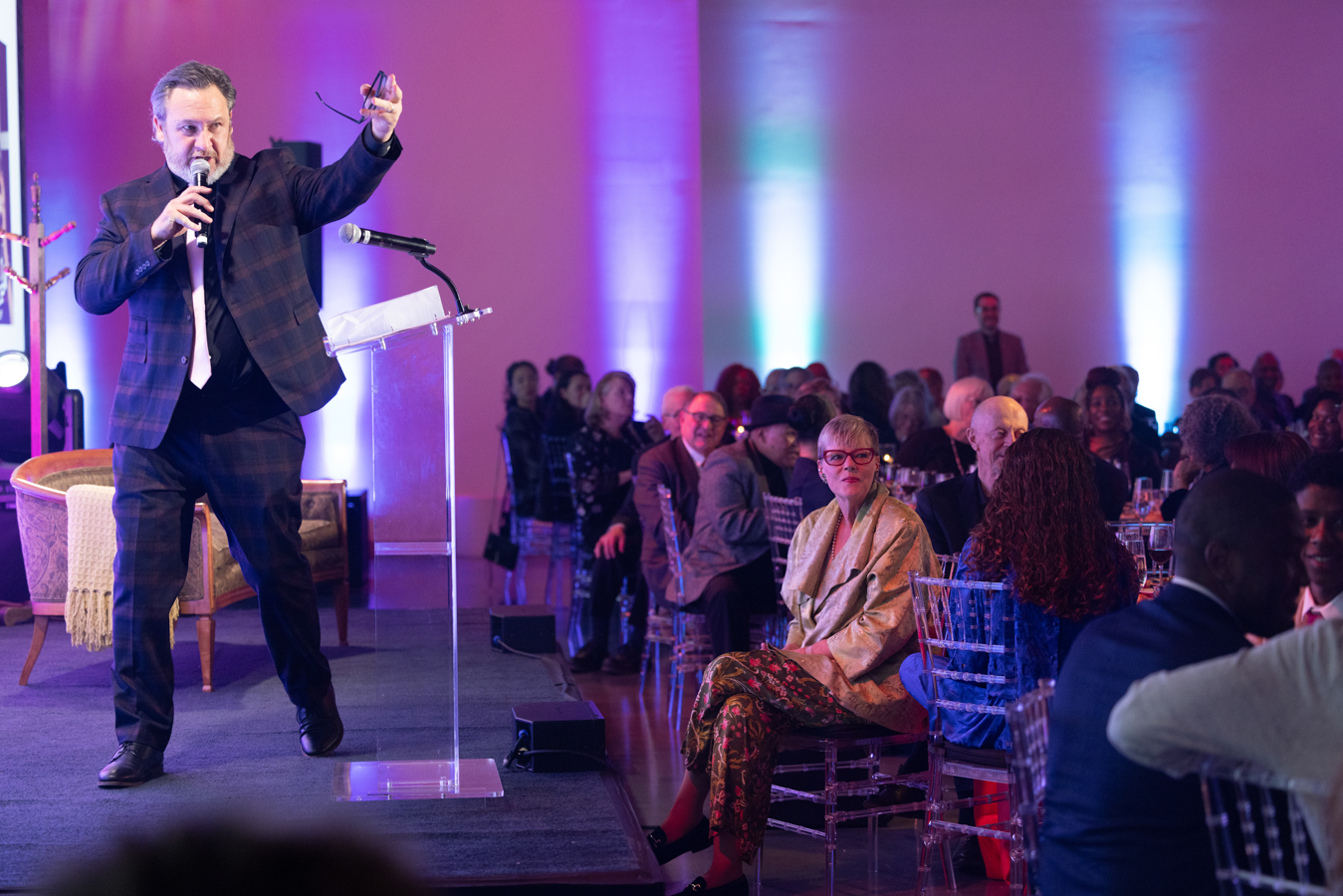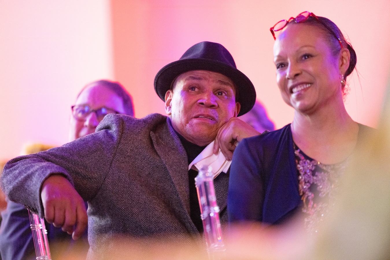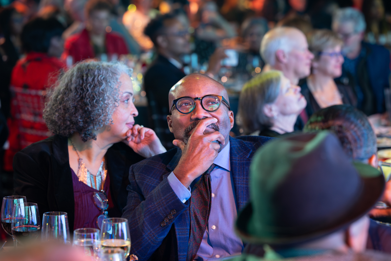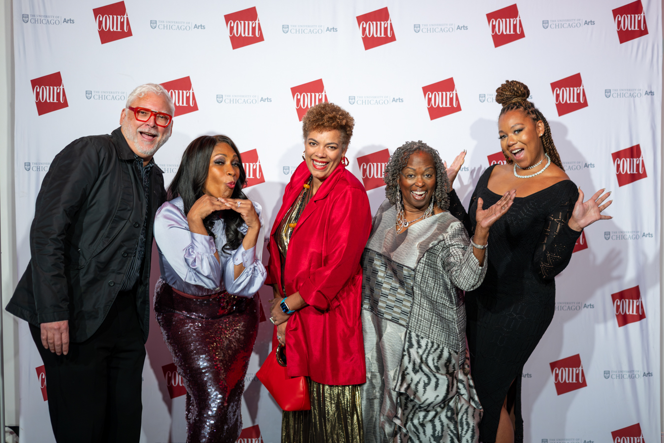 Photo of 2025 Gala Co-Chair Amina Dickerson, Ron OJ Parson, and guests by John Zich and Anne Ryan.